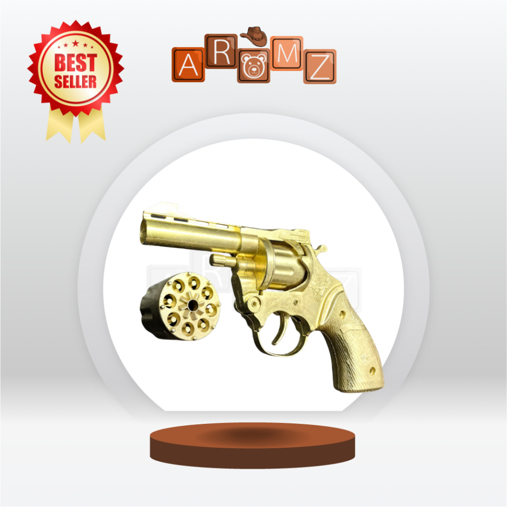 مسدس لعبة شبيه بمسدس أبو محالة الربع، مصنوع من الحديد الكامل بلون ذهبي جذاب، يضيف لمسة من الفخامة والأناقة سواء كنت ترتديه مع المحزم أو تستخدمه في اللعب. بفضل تصميمه الواقعي وصوته القوي، ستشعر وكأنك تعيش لحظات مليئة بالإثارة وكأنك في أحد الأفلام القتالية. يتميز بسهولة إطلاقه وسرعته العالية، ليمنحك تجربة ممتعة وتحدياً مشوقاً أثناء اللعب مع أصدقائك.